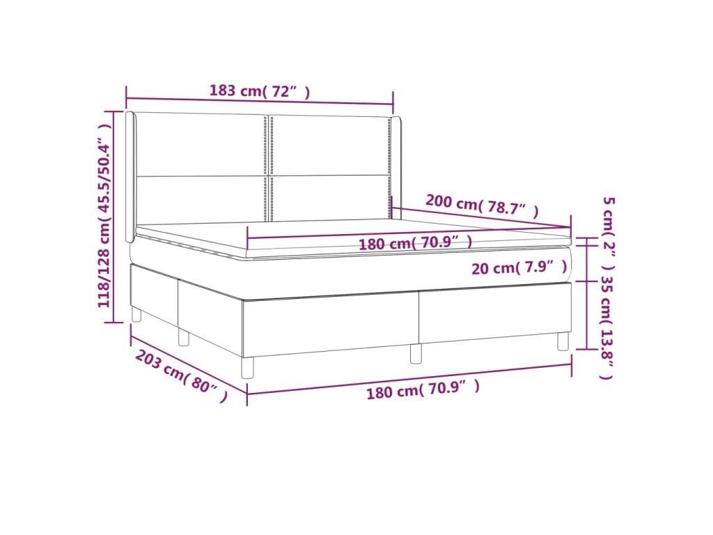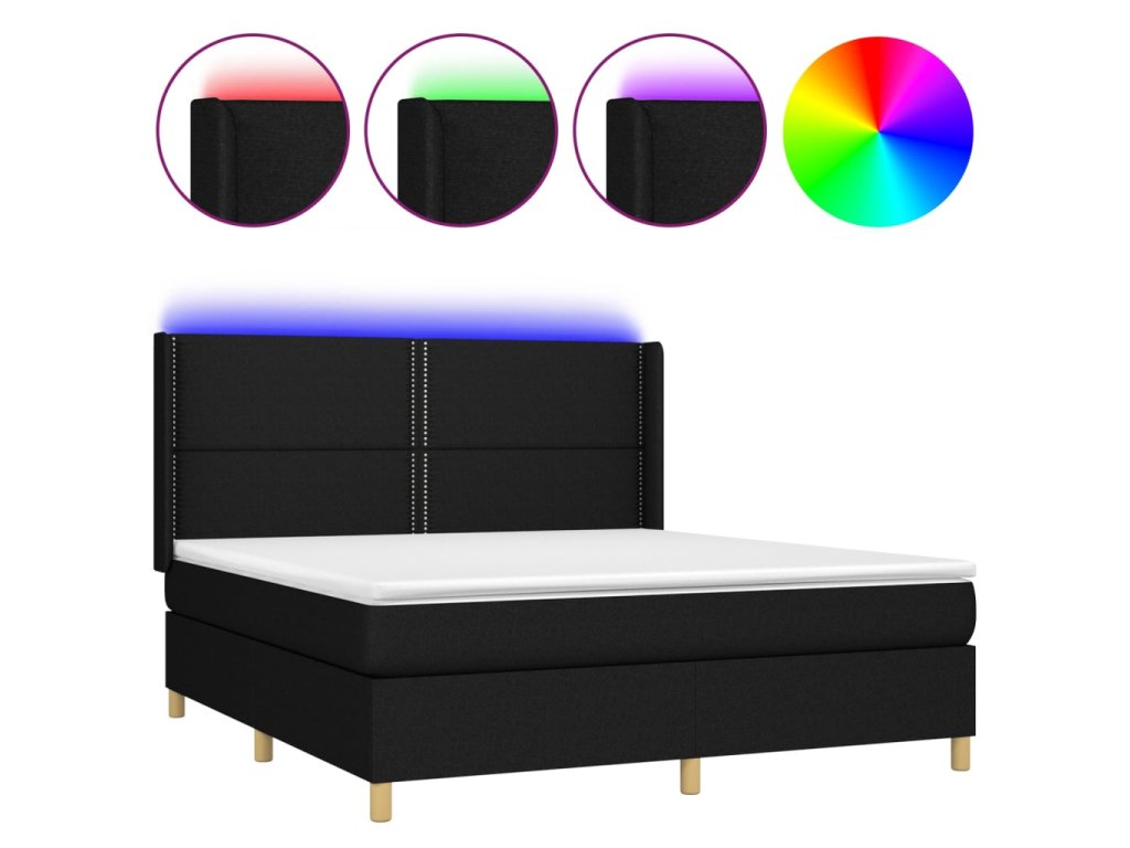vidaXL Posteľ boxsping s matracom a LED čierna 180x200 cm látka