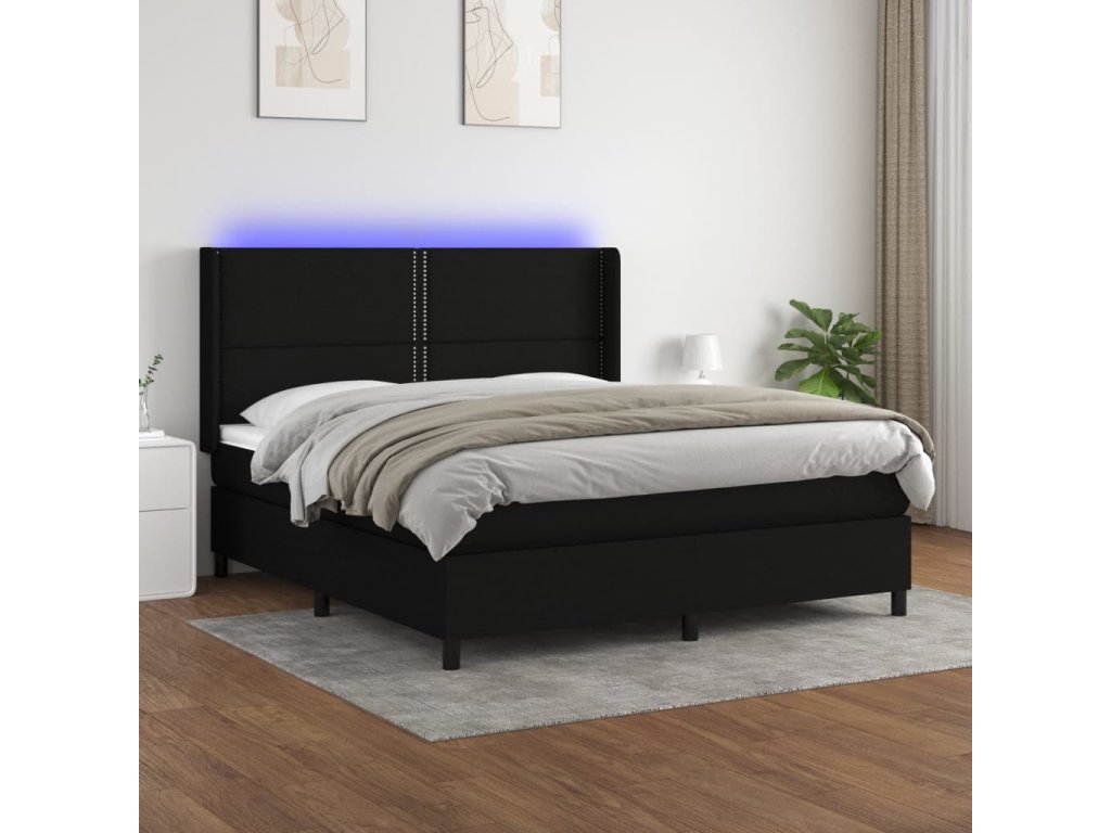 vidaXL Posteľ boxsping s matracom a LED čierna 180x200 cm látka