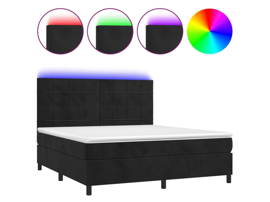 vidaXL Posteľ boxsping s matracom a LED čierna 180x200 cm zamat