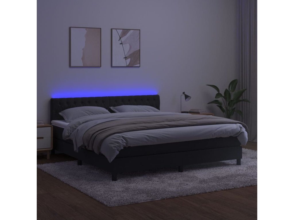 vidaXL Posteľ boxsping s matracom a LED čierna 180x200 cm zamat