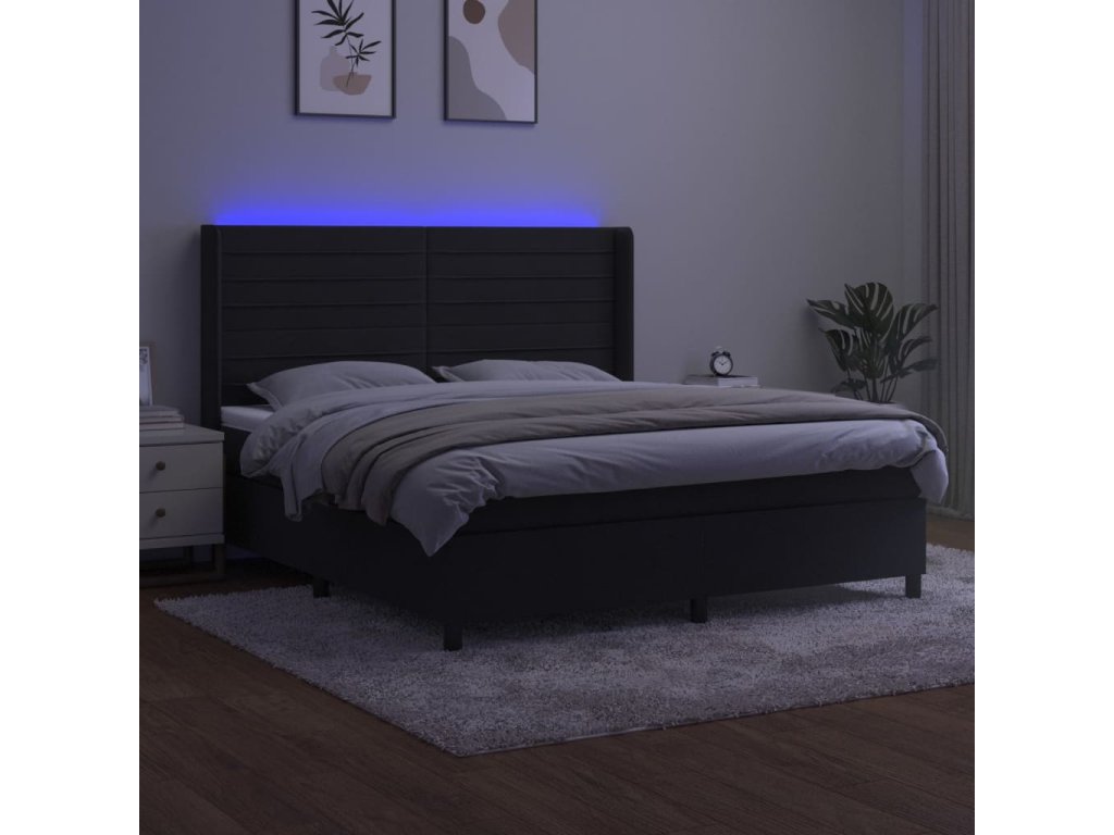 vidaXL Posteľ boxsping s matracom a LED čierna 180x200 cm zamat