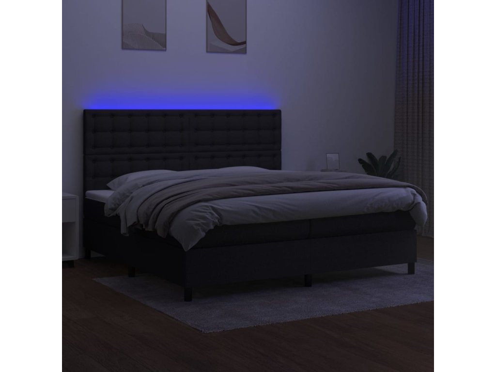 vidaXL Posteľ boxsping s matracom a LED čierna 200x200 cm látka