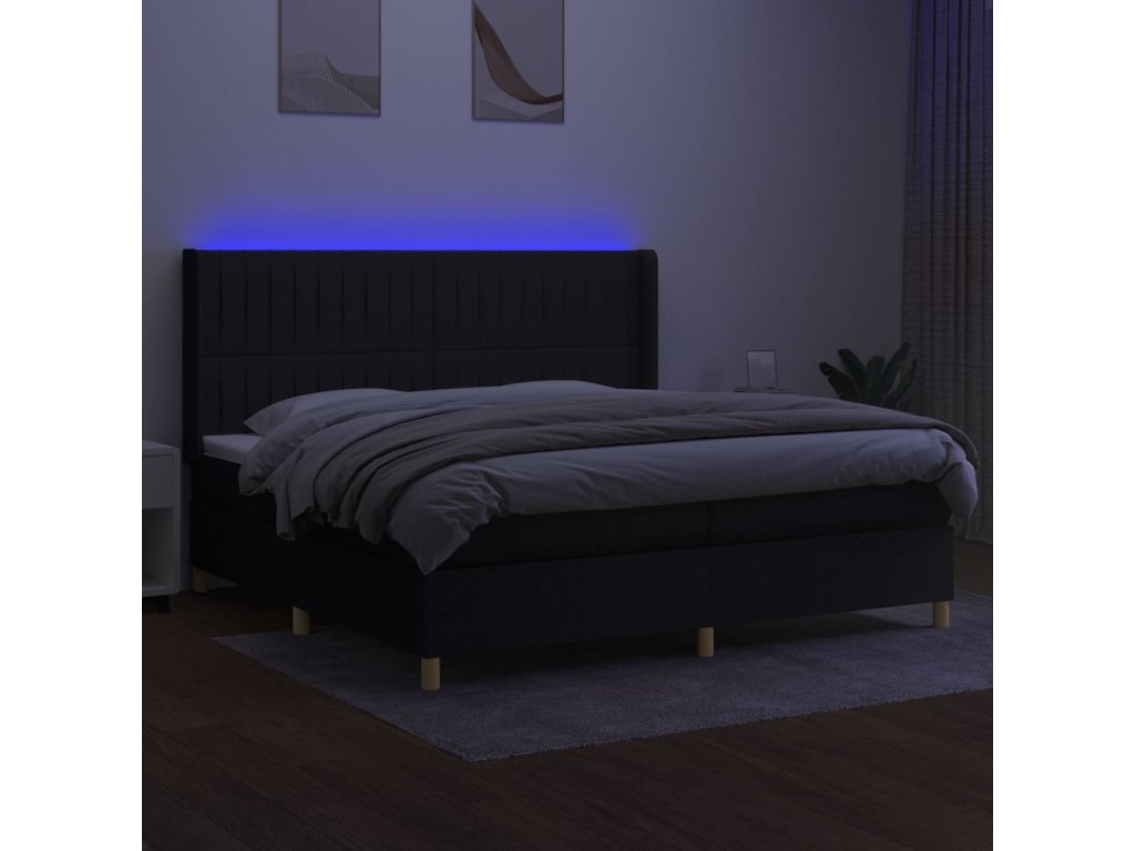vidaXL Posteľ boxsping s matracom a LED čierna 200x200 cm látka