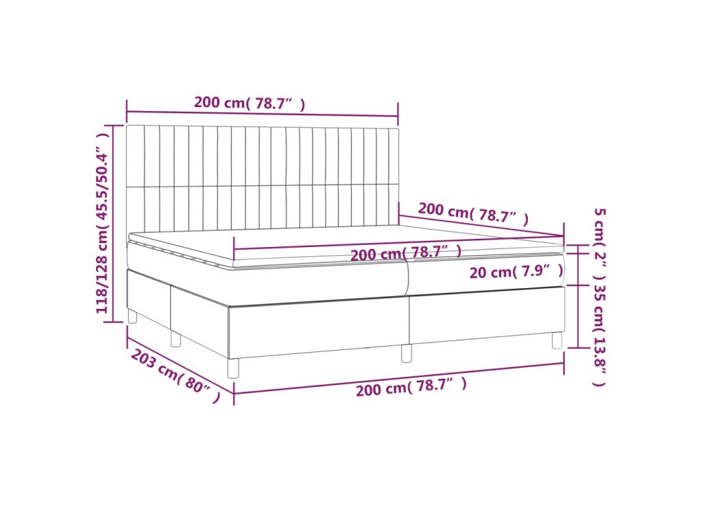 vidaXL Posteľ boxsping s matracom a LED čierna 200x200 cm látka