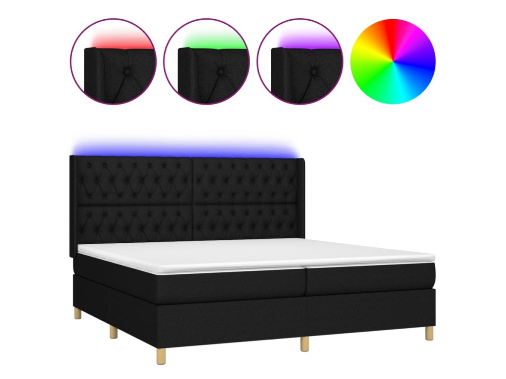 vidaXL Posteľ boxsping s matracom a LED čierna 200x200 cm látka