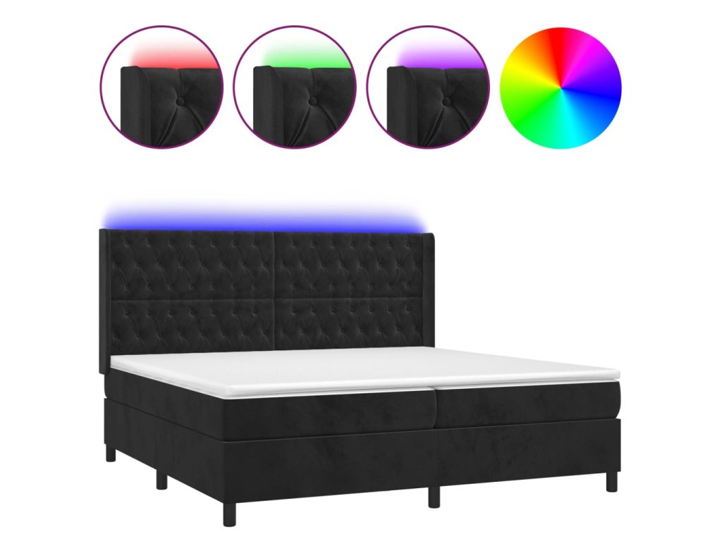 vidaXL Posteľ boxsping s matracom a LED čierna 200x200 cm zamat