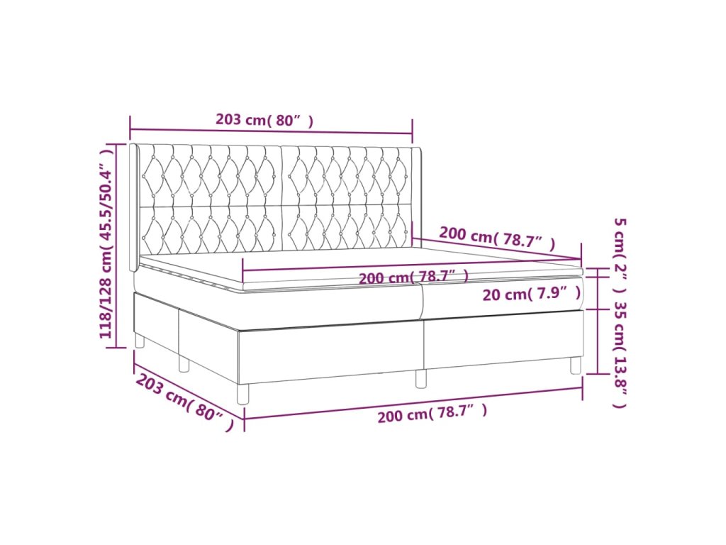 - Celkové rozmery: 203 x 203 x 118/128 cm (D x Š x V)