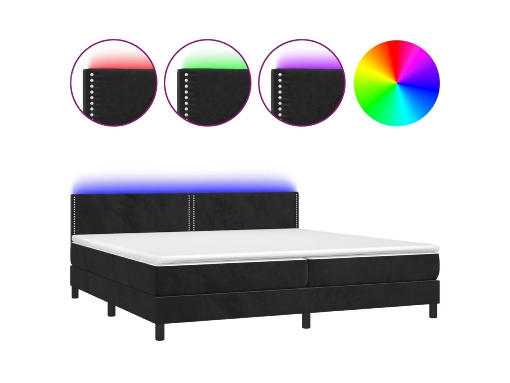 vidaXL Posteľ boxsping s matracom a LED čierna 200x200 cm zamat