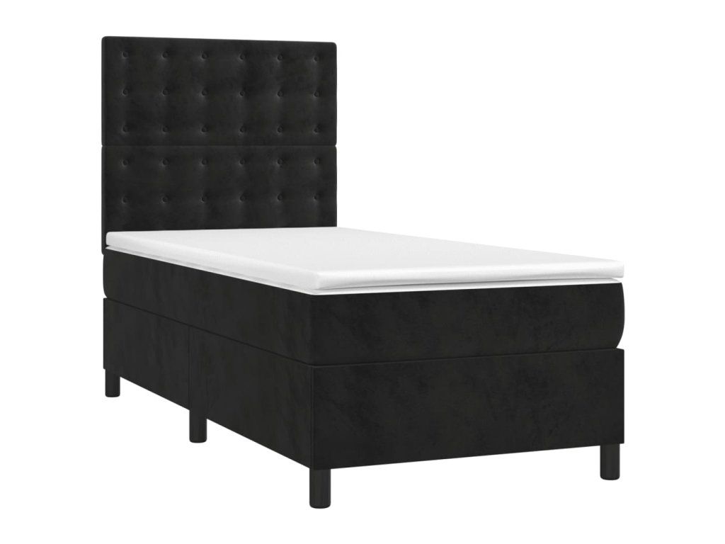 vidaXL Posteľ boxsping s matracom a LED čierna 90x200 cm zamat