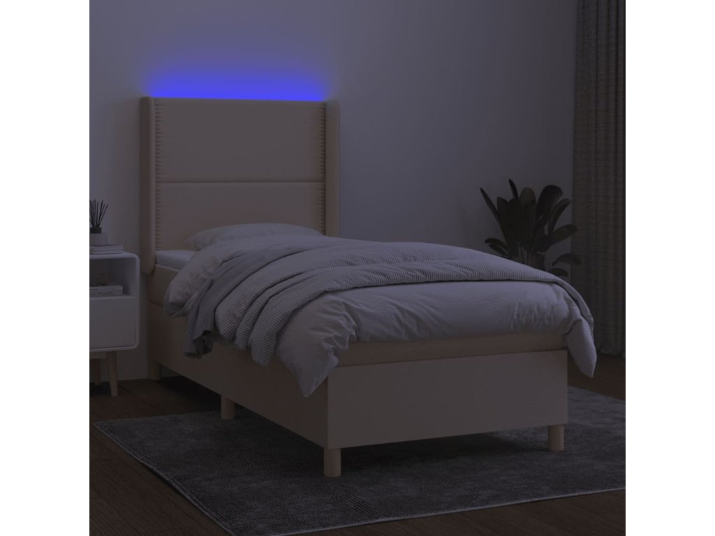 vidaXL Posteľ boxsping s matracom a LED krémová 100x200 cm látka