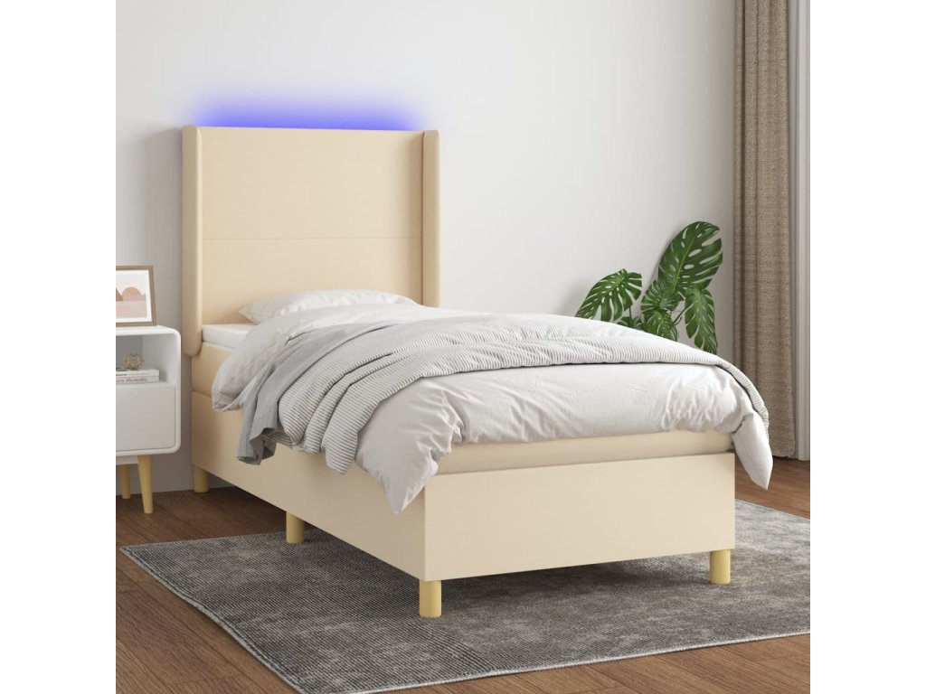 vidaXL Posteľ boxsping s matracom a LED krémová 100x200 cm látka