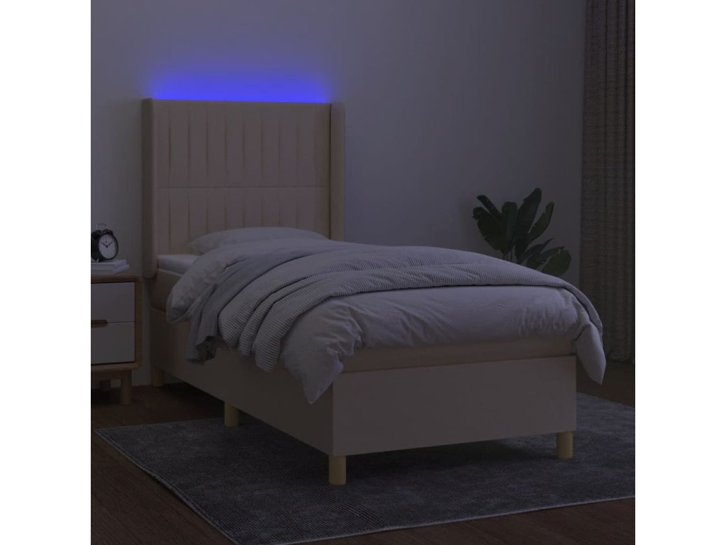 vidaXL Posteľ boxsping s matracom a LED krémová 100x200 cm látka