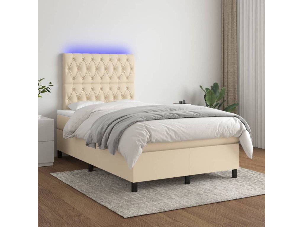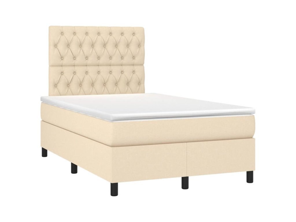 vidaXL Posteľ boxsping s matracom a LED krémová 120x200 cm látka