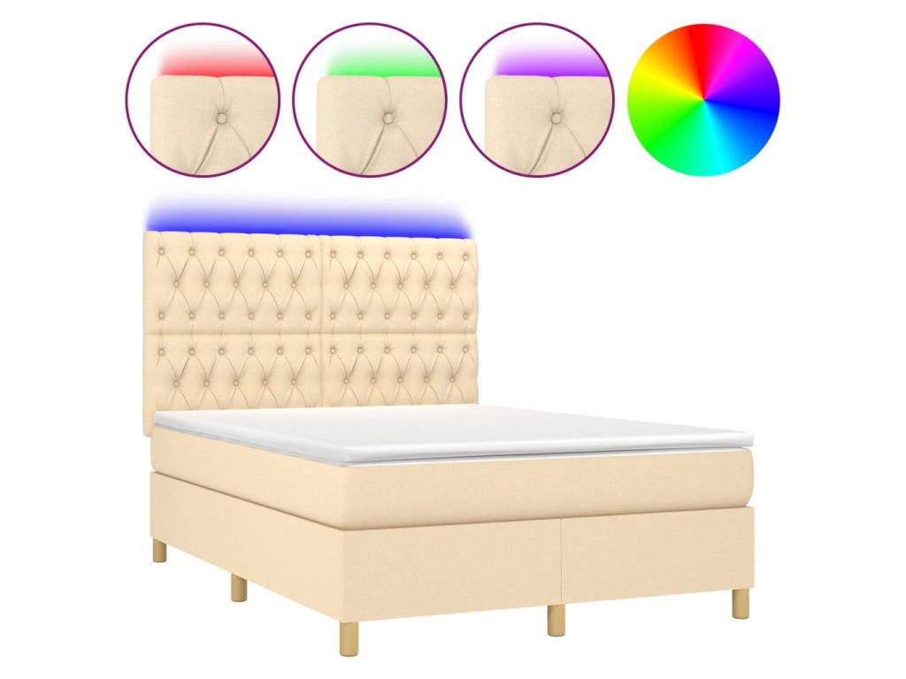 vidaXL Posteľ boxsping s matracom a LED krémová 140x190 cm látka