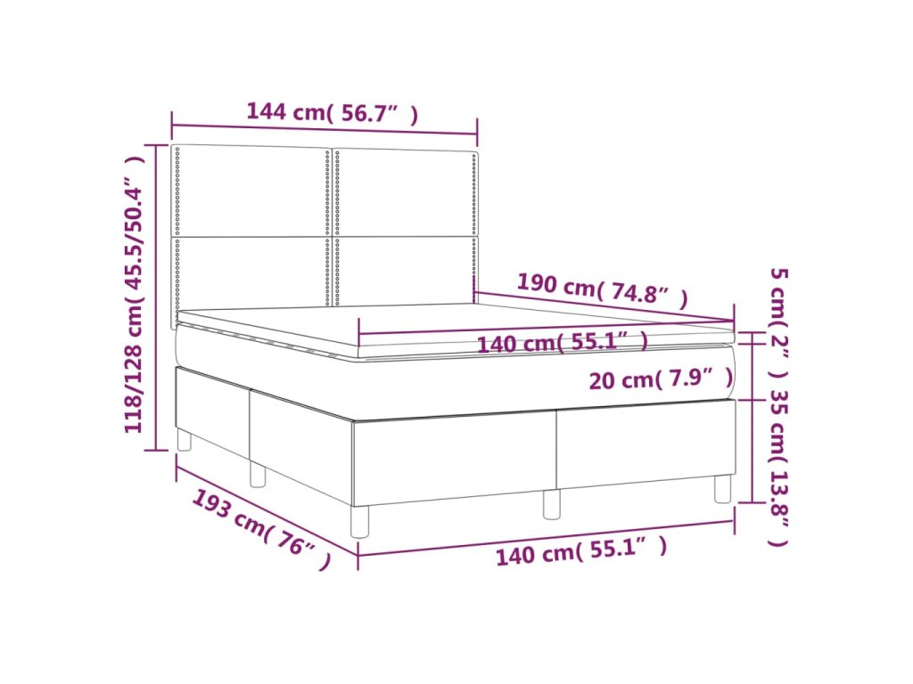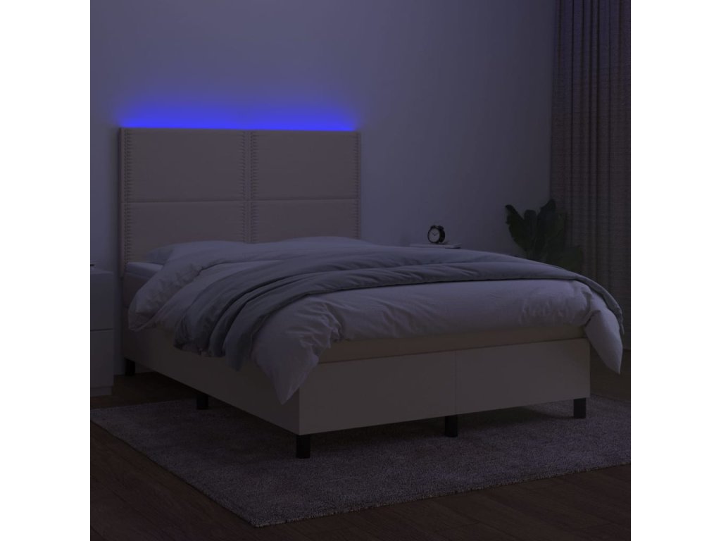 vidaXL Posteľ boxsping s matracom a LED krémová 140x190 cm látka