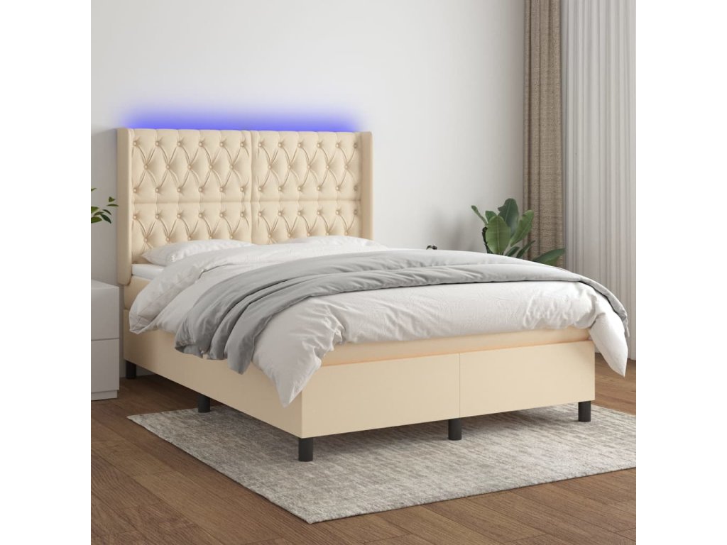 vidaXL Posteľ boxsping s matracom a LED krémová 140x190 cm látka