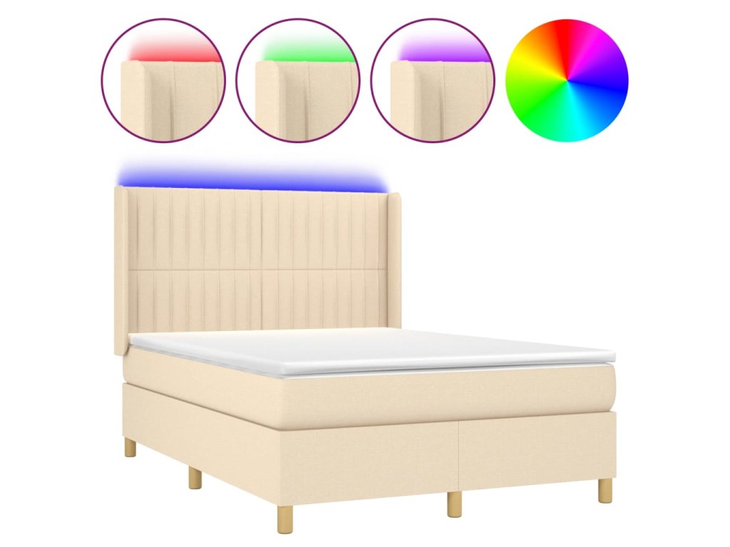 vidaXL Posteľ boxsping s matracom a LED krémová 140x190 cm látka