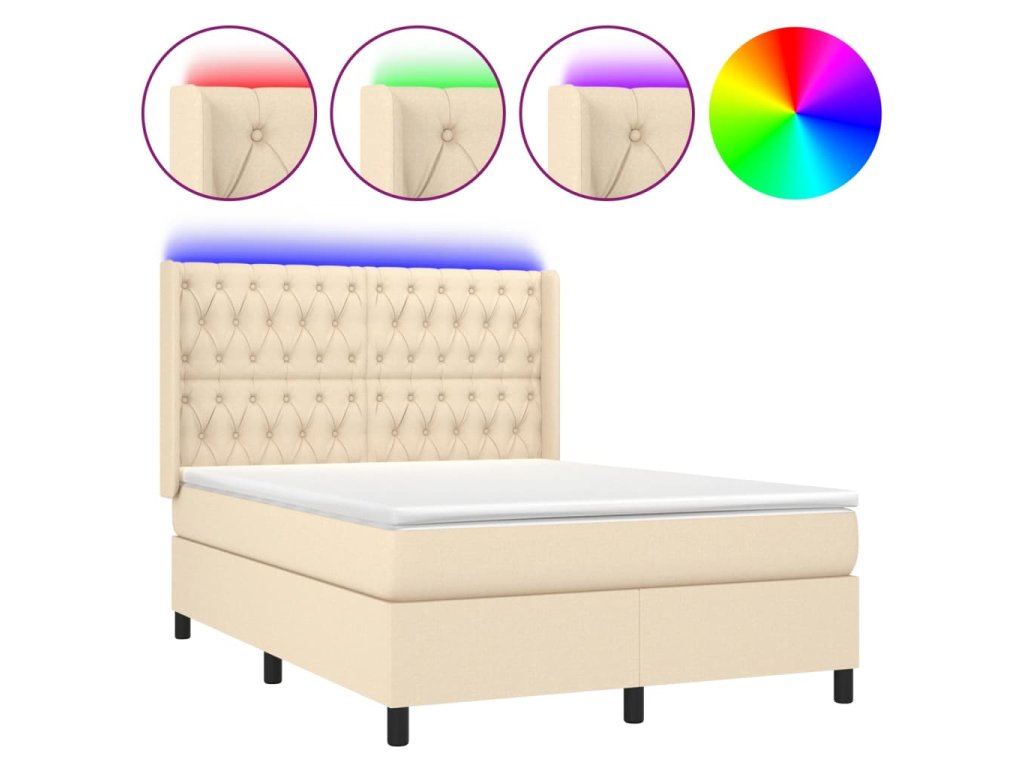 vidaXL Posteľ boxsping s matracom a LED krémová 140x200 cm látka