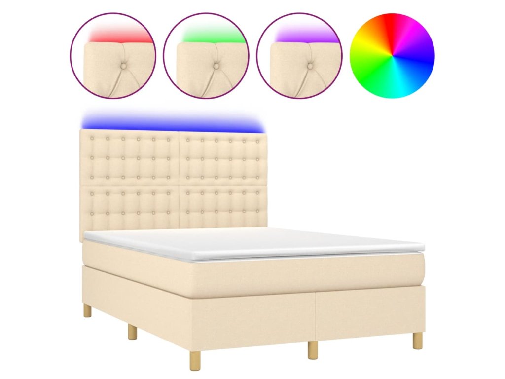 vidaXL Posteľ boxsping s matracom a LED krémová 140x200 cm látka