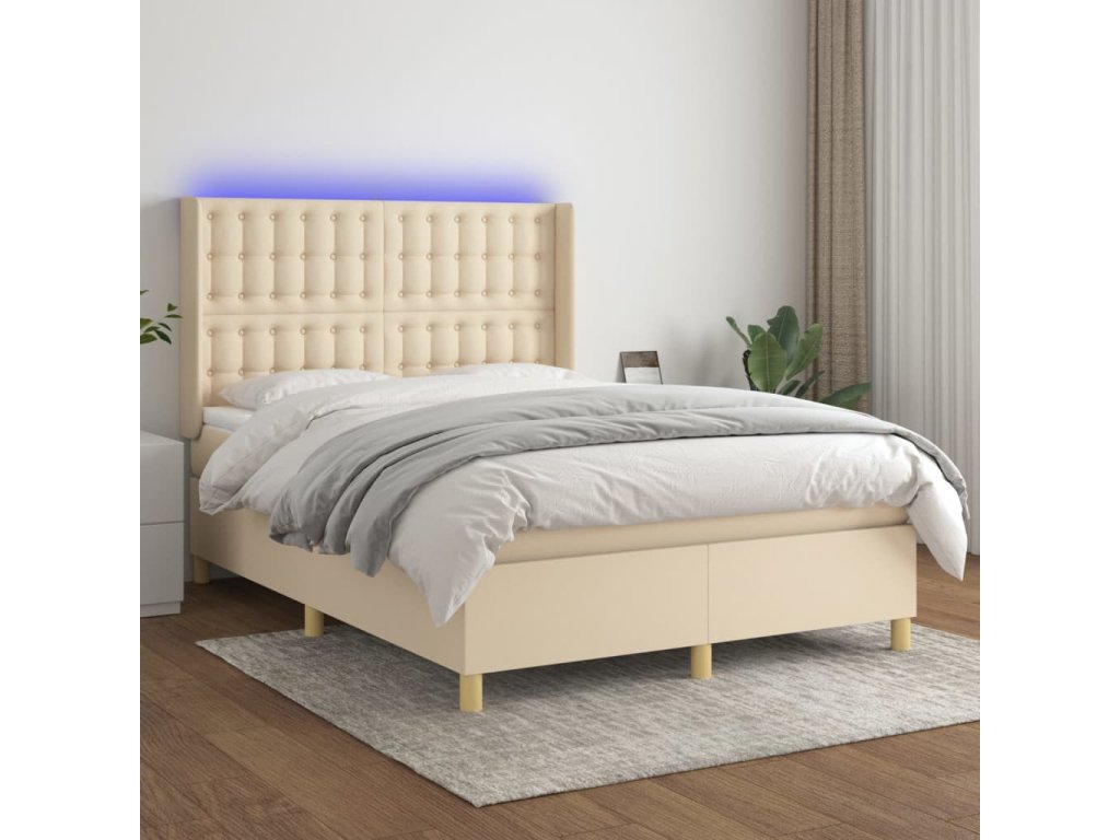 vidaXL Posteľ boxsping s matracom a LED krémová 140x200 cm látka