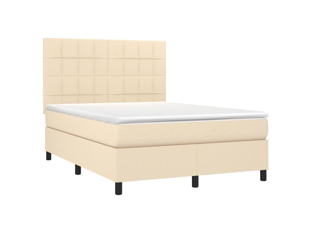 vidaXL Posteľ boxsping s matracom a LED krémová 140x200 cm látka