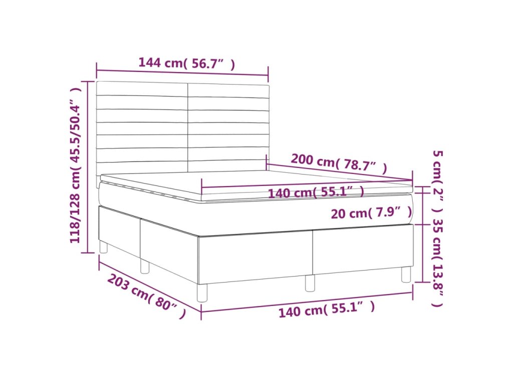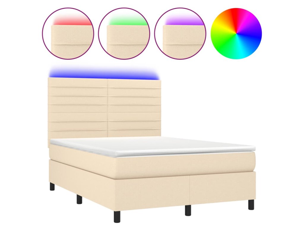 vidaXL Posteľ boxsping s matracom a LED krémová 140x200 cm látka