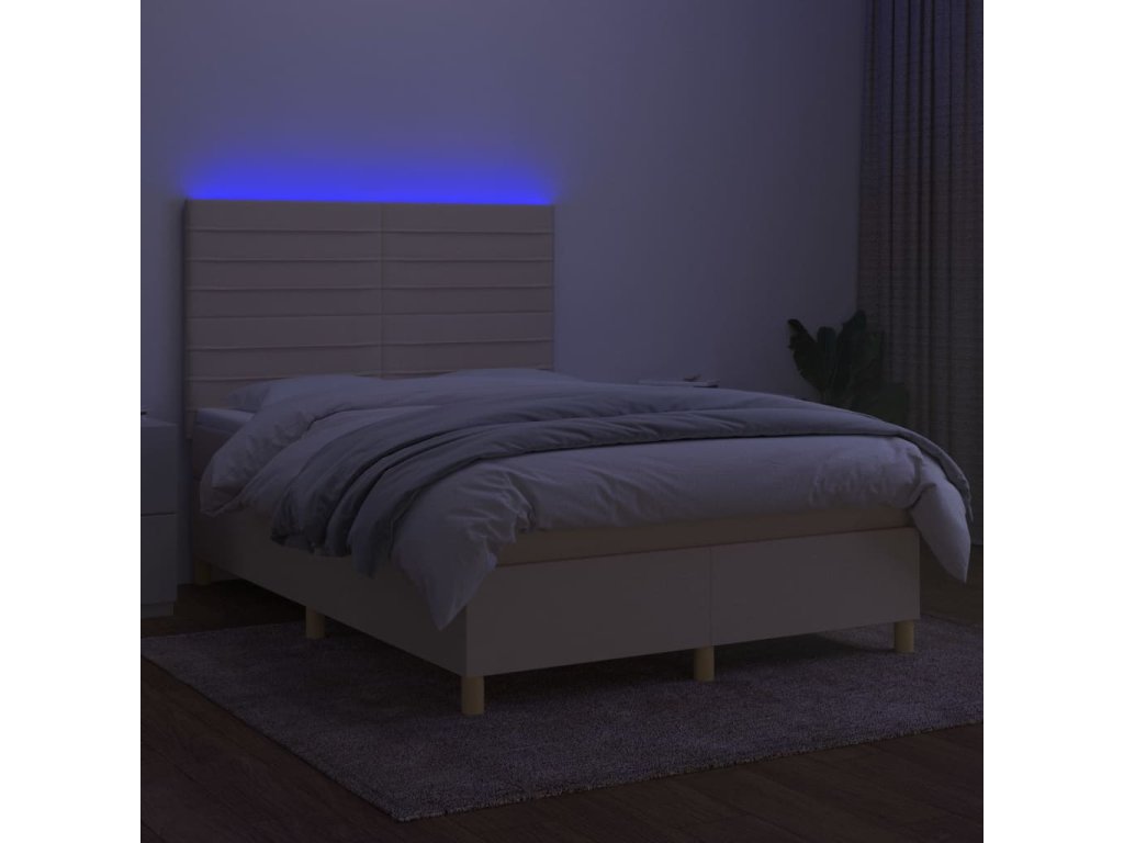 vidaXL Posteľ boxsping s matracom a LED krémová 140x200 cm látka
