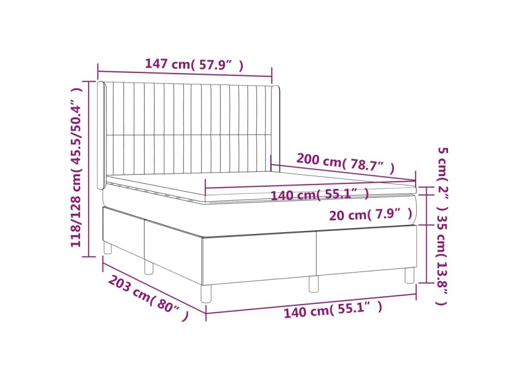 vidaXL Posteľ boxsping s matracom a LED krémová 140x200 cm látka