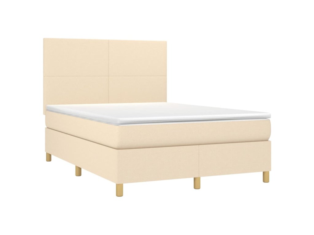 vidaXL Posteľ boxsping s matracom a LED krémová 140x200 cm látka