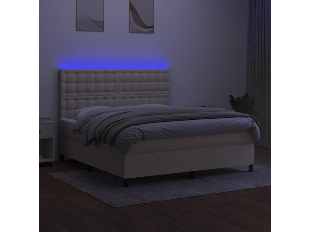 vidaXL Posteľ boxsping s matracom a LED krémová 160x200 cm látka