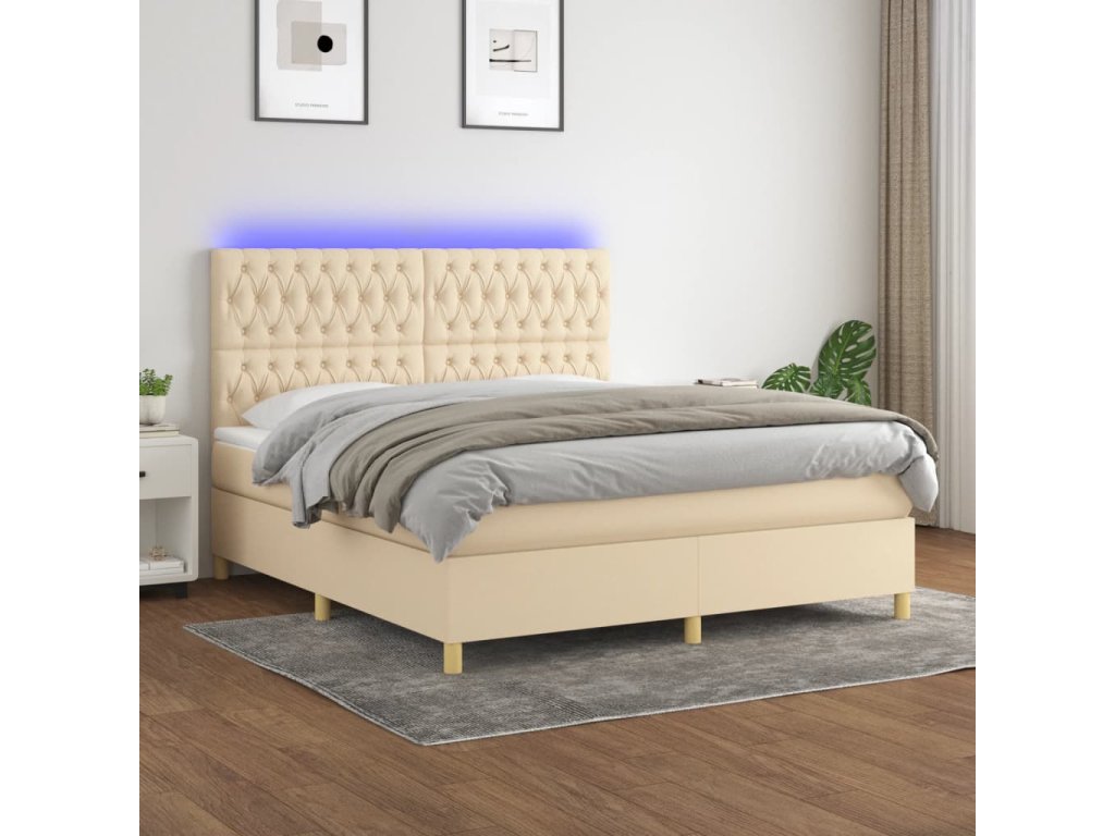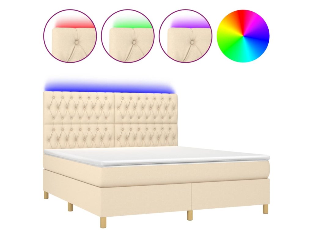 vidaXL Posteľ boxsping s matracom a LED krémová 160x200 cm látka