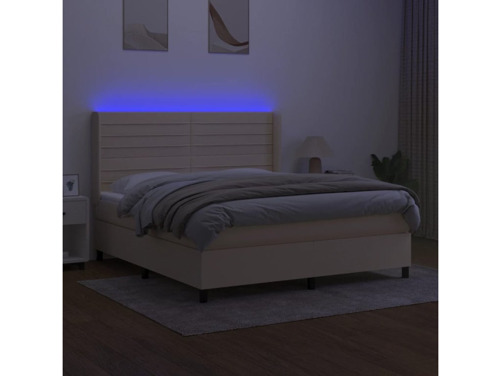 vidaXL Posteľ boxsping s matracom a LED krémová 160x200 cm látka