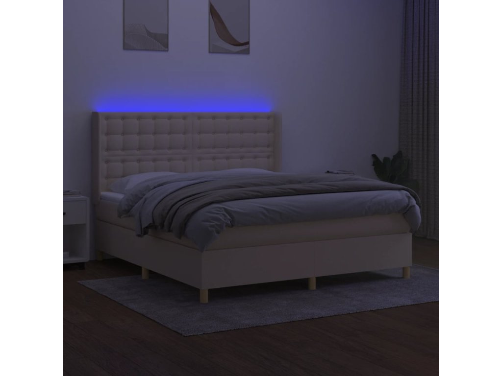 vidaXL Posteľ boxsping s matracom a LED krémová 180x200 cm látka