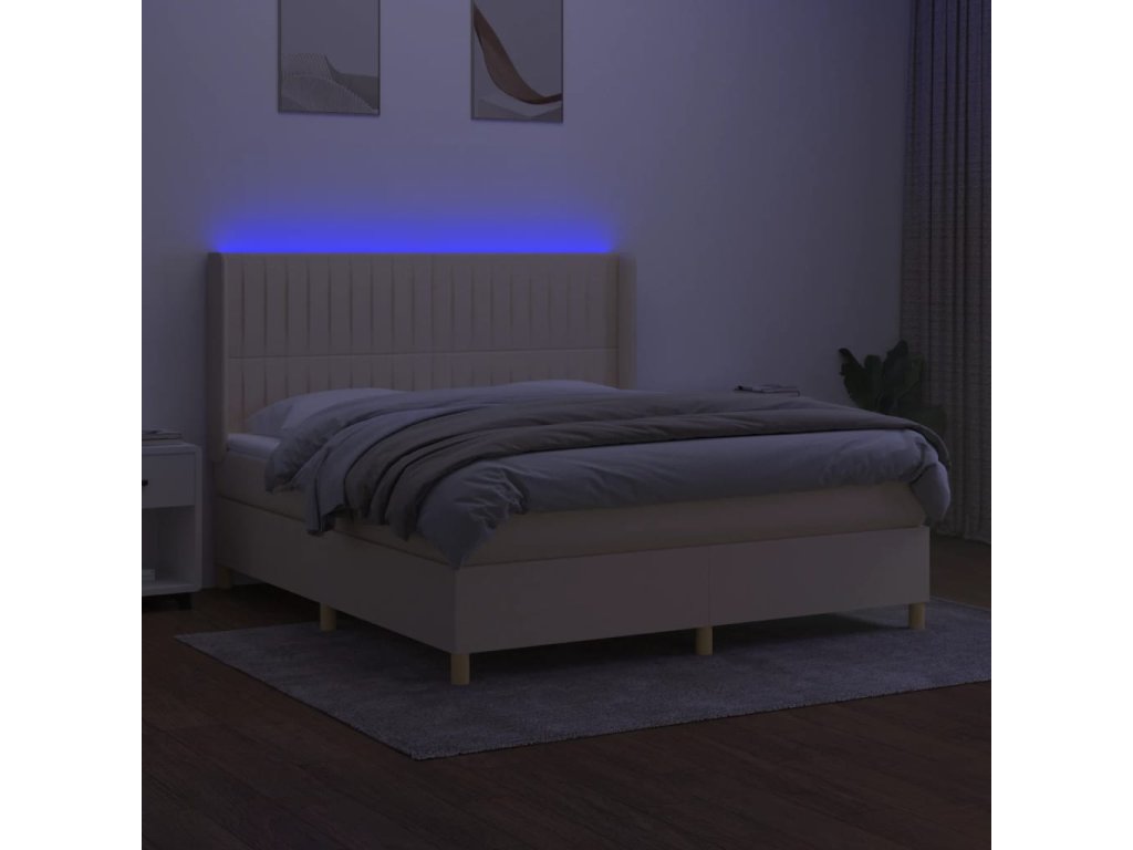 vidaXL Posteľ boxsping s matracom a LED krémová 180x200 cm látka