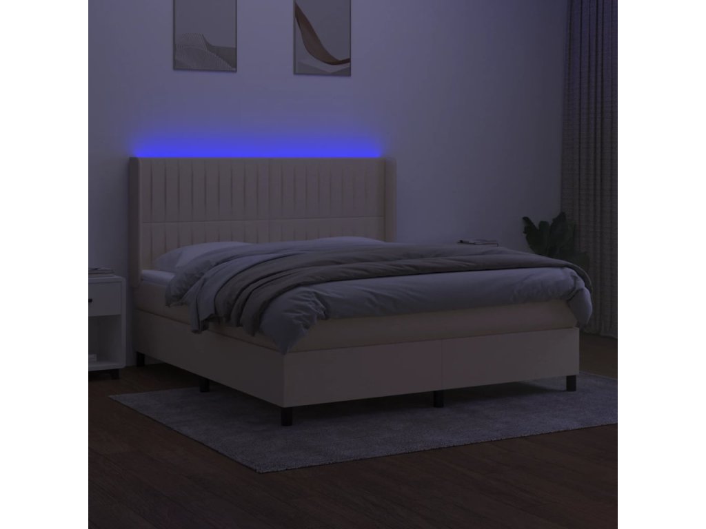 vidaXL Posteľ boxsping s matracom a LED krémová 180x200 cm látka