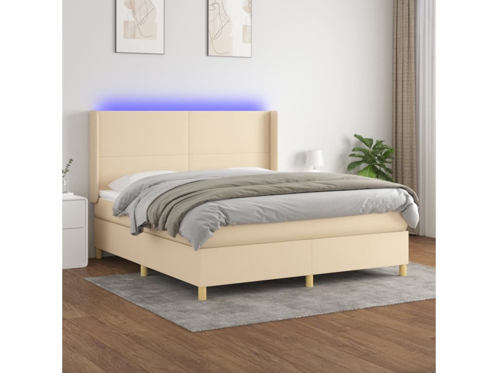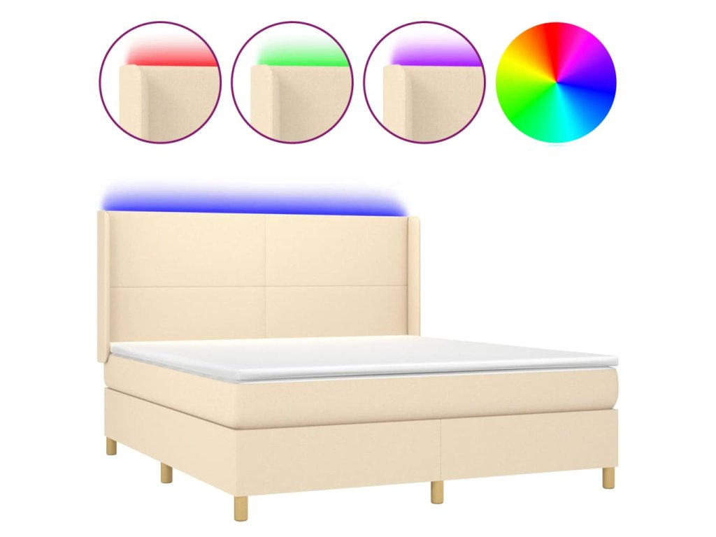 vidaXL Posteľ boxsping s matracom a LED krémová 180x200 cm látka