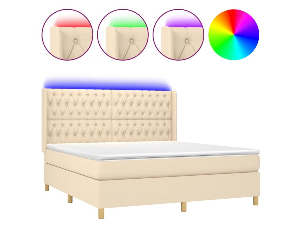 vidaXL Posteľ boxsping s matracom a LED krémová 180x200 cm látka