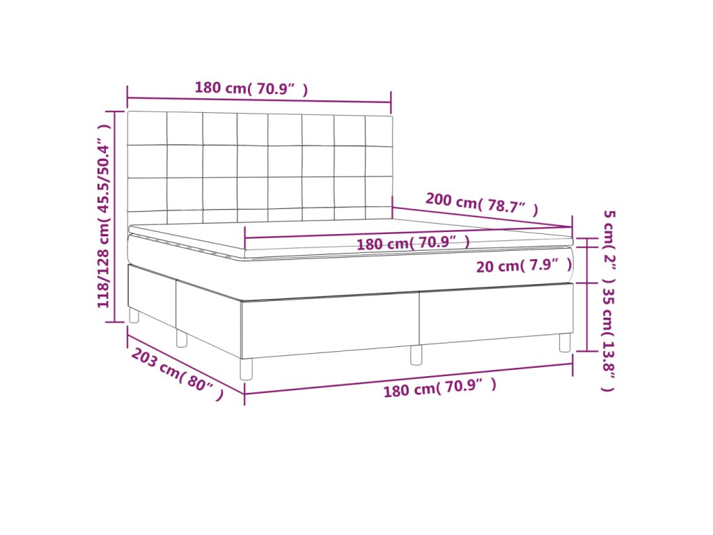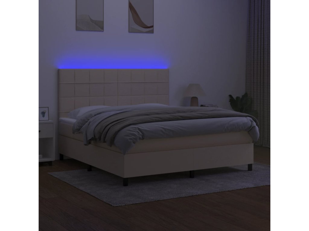 vidaXL Posteľ boxsping s matracom a LED krémová 180x200 cm látka