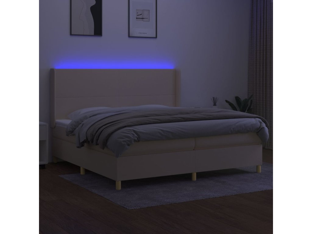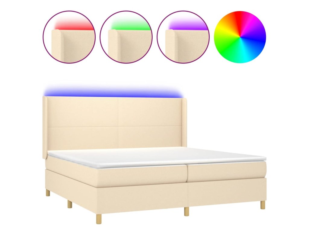 vidaXL Posteľ boxsping s matracom a LED krémová 200x200 cm látka