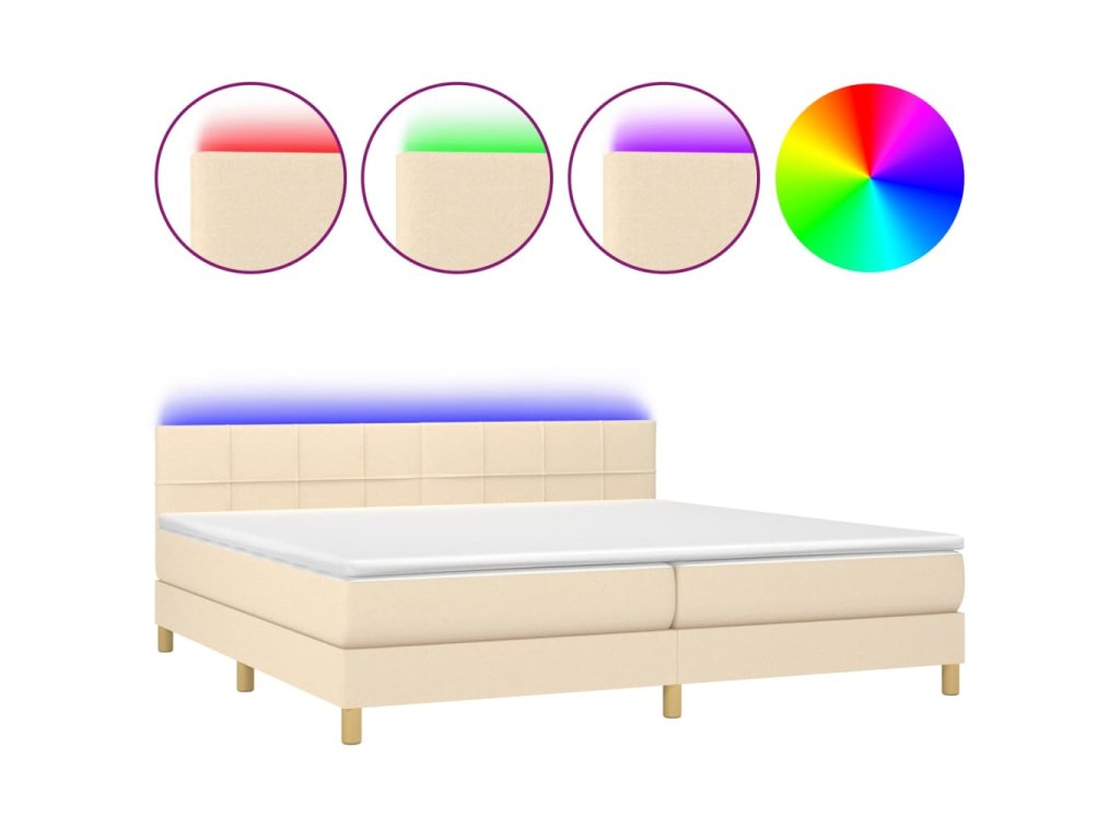 vidaXL Posteľ boxsping s matracom a LED krémová 200x200 cm látka