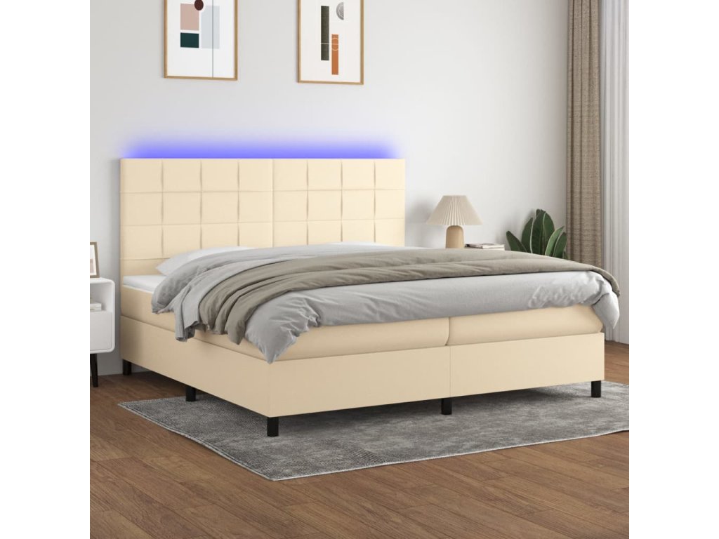 vidaXL Posteľ boxsping s matracom a LED krémová 200x200 cm látka