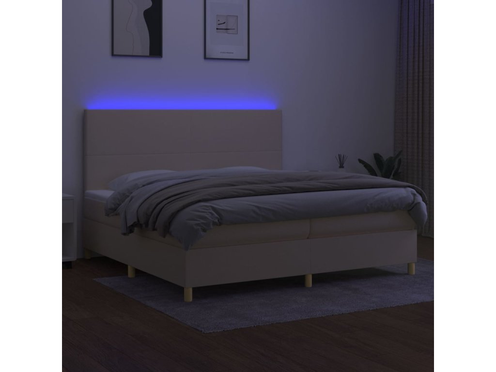 vidaXL Posteľ boxsping s matracom a LED krémová 200x200 cm látka