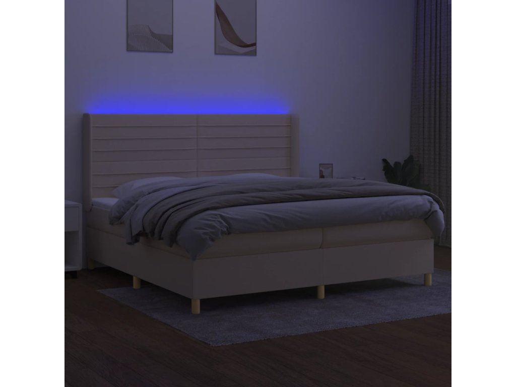 vidaXL Posteľ boxsping s matracom a LED krémová 200x200 cm látka