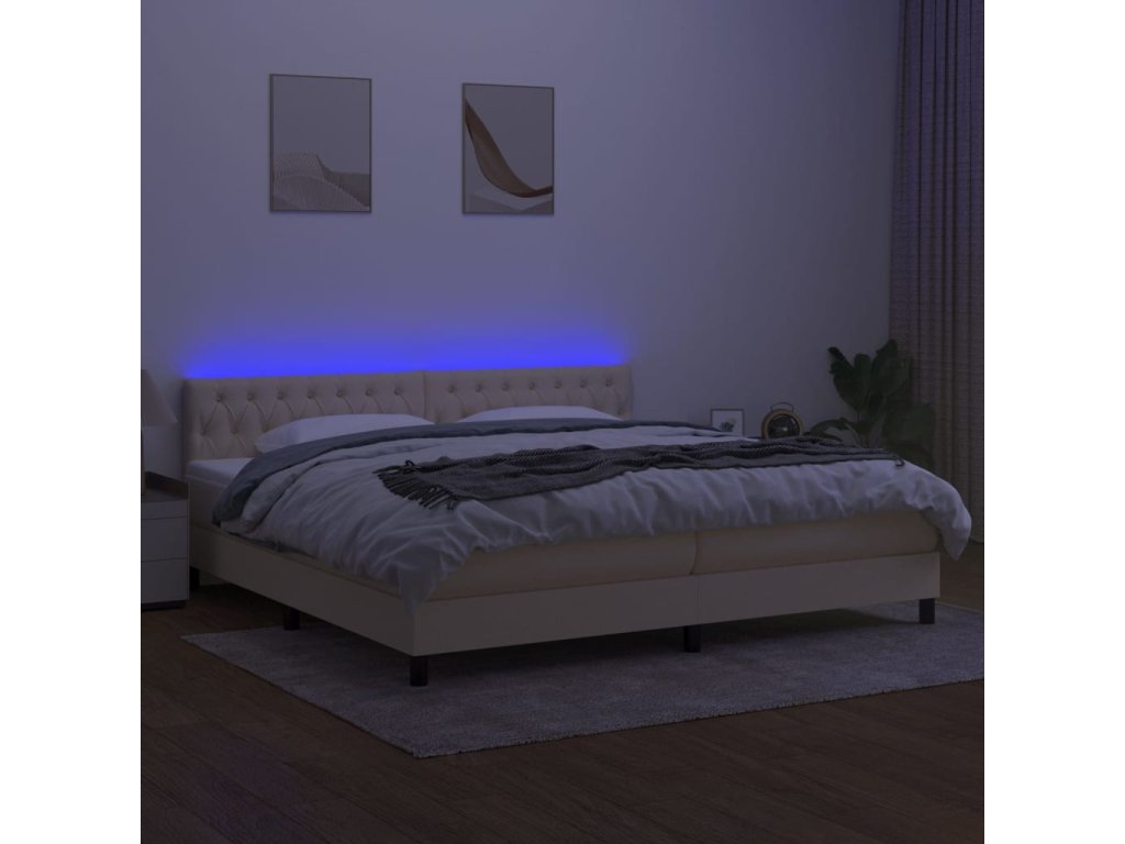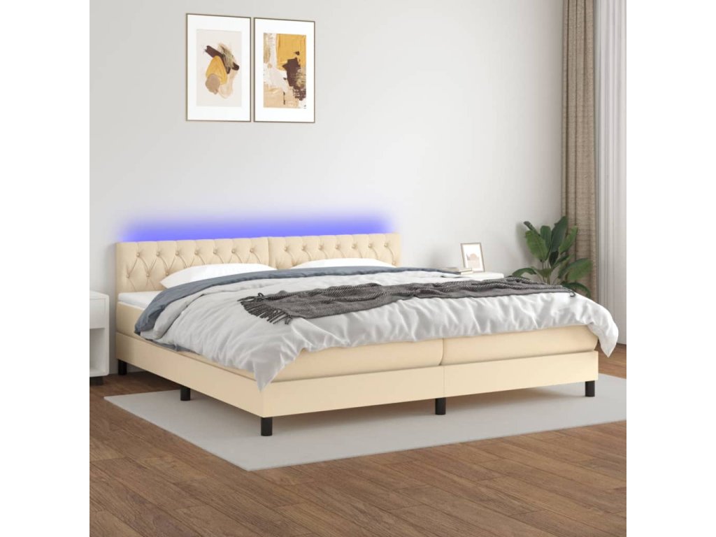 vidaXL Posteľ boxsping s matracom a LED krémová 200x200 cm látka