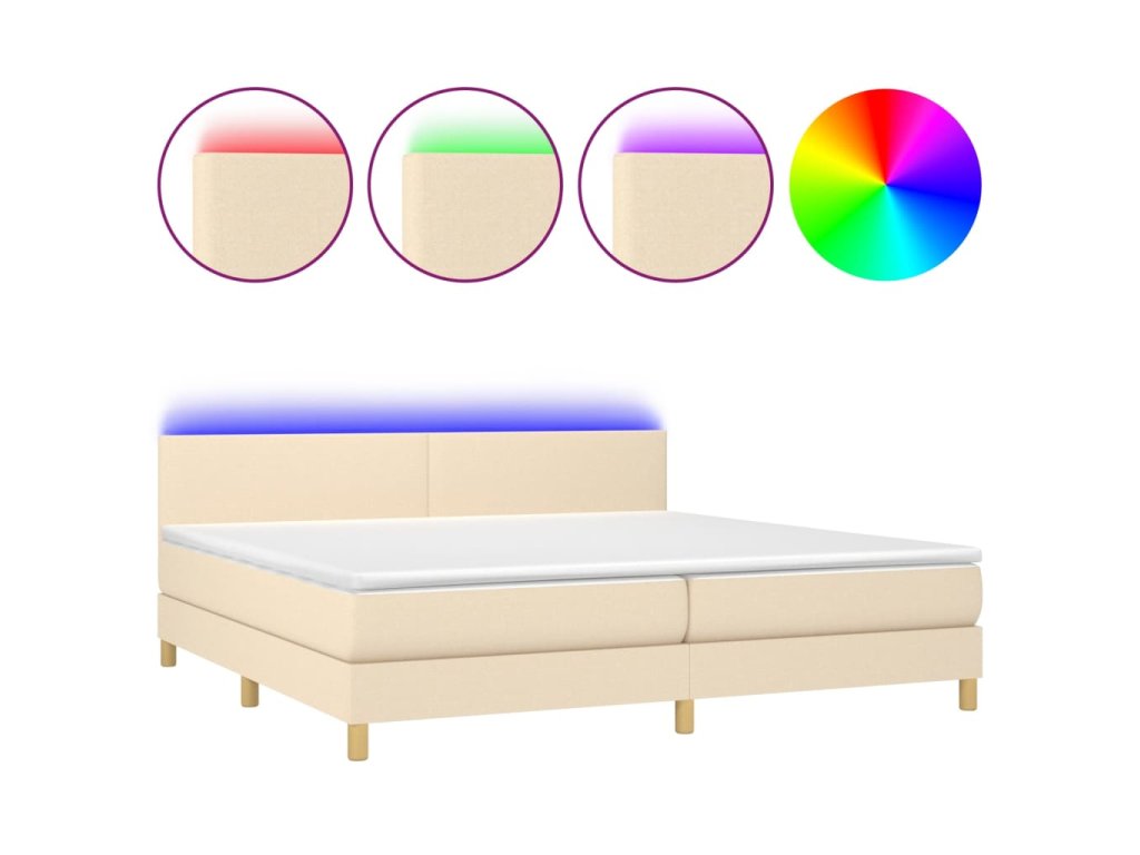 vidaXL Posteľ boxsping s matracom a LED krémová 200x200 cm látka
