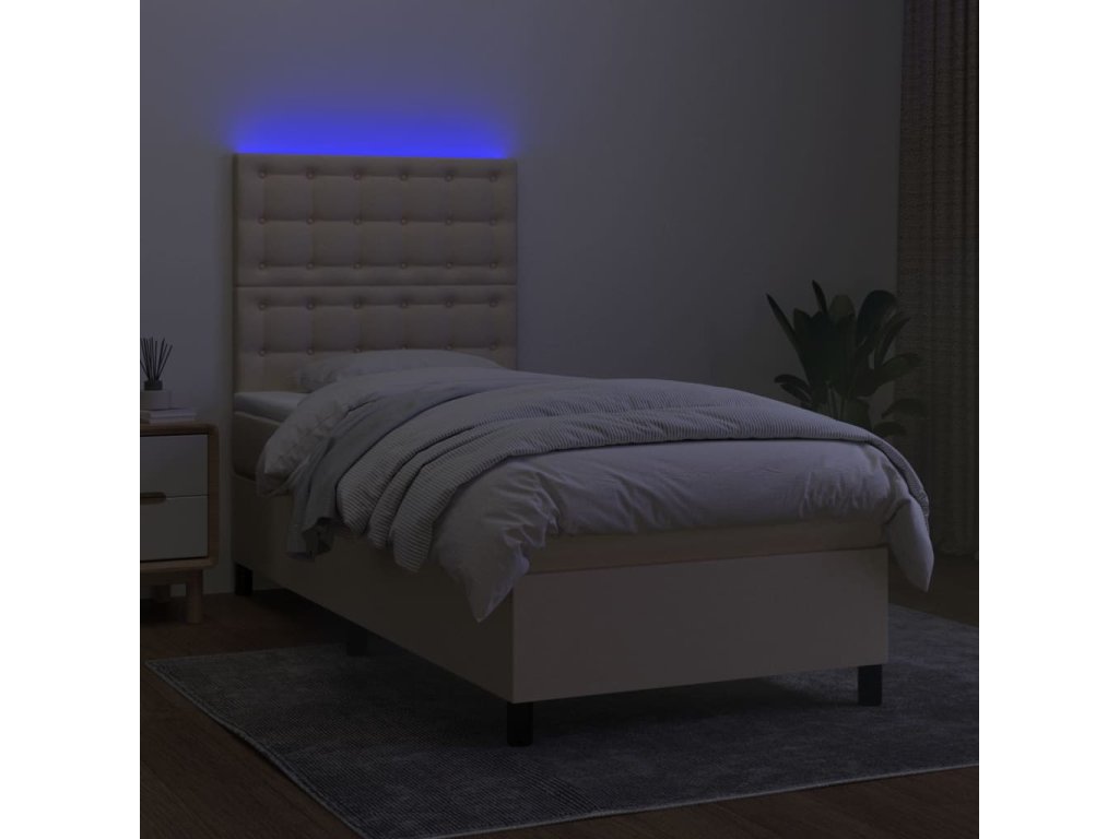 vidaXL Posteľ boxsping s matracom a LED krémová 80x200 cm látka