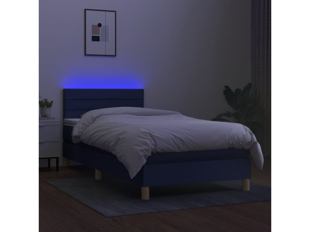 vidaXL Posteľ boxsping s matracom a LED modrá 100x200 cm látka