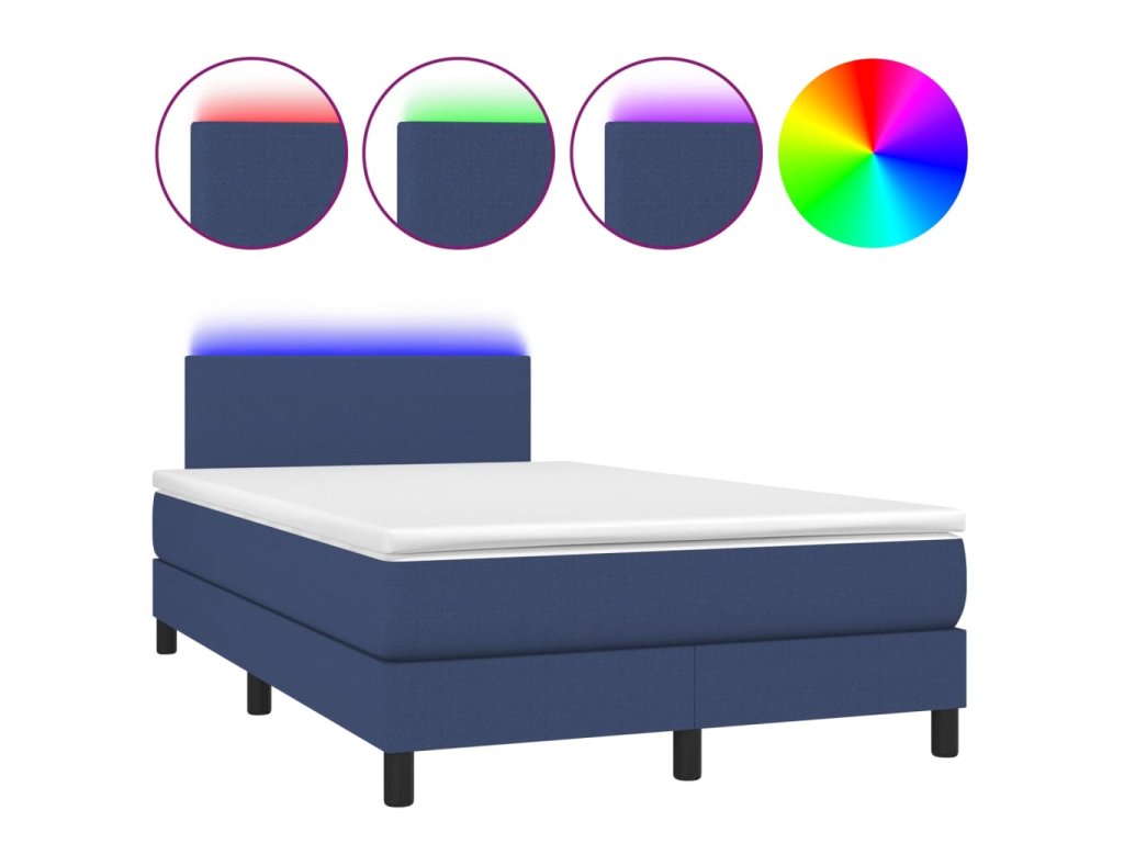 vidaXL Posteľ boxsping s matracom a LED modrá 120x200 cm látka