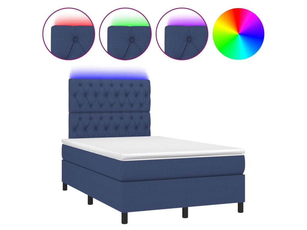vidaXL Posteľ boxsping s matracom a LED modrá 120x200 cm látka