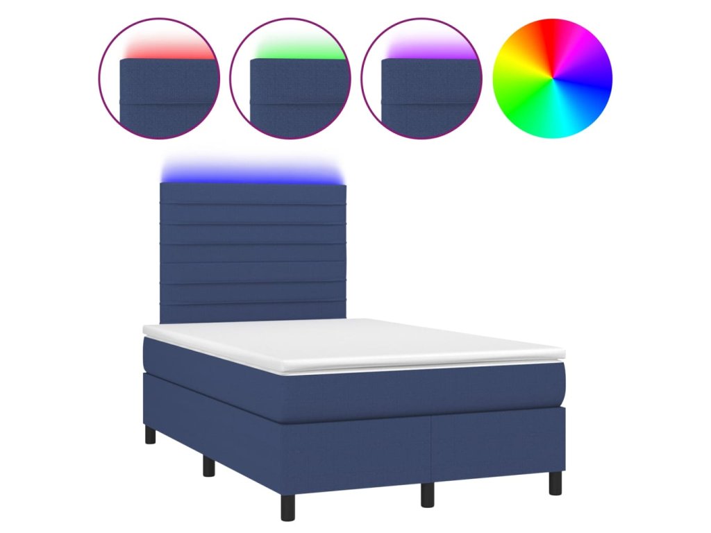 vidaXL Posteľ boxsping s matracom a LED modrá 120x200 cm látka